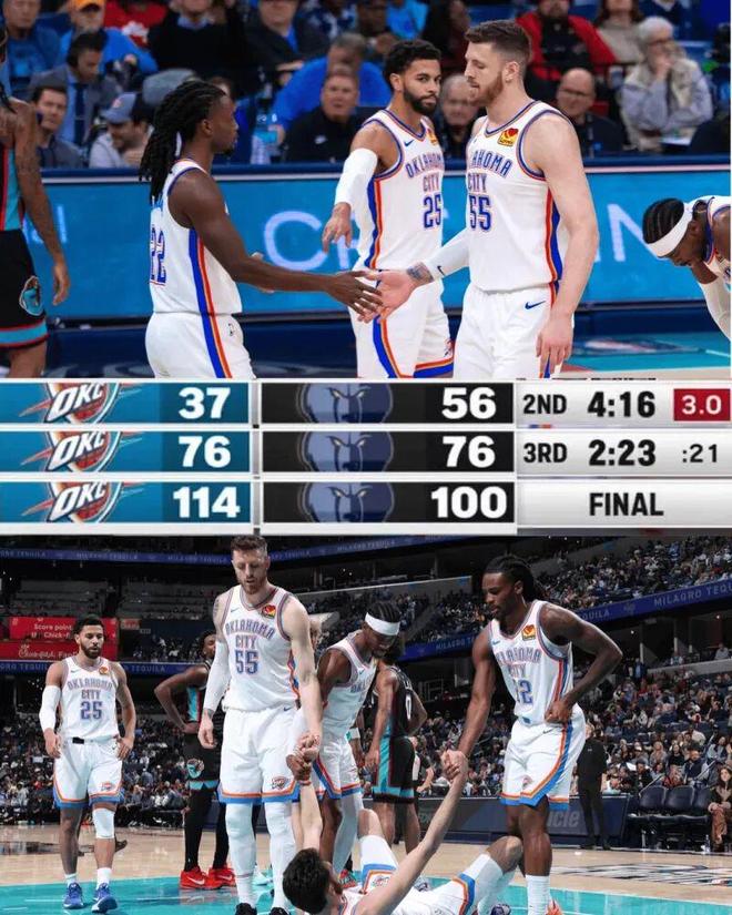 从落后19分到赢了14分,雷霆完成了33分的逆转,灰熊仿佛回到了上赛季的季后赛。